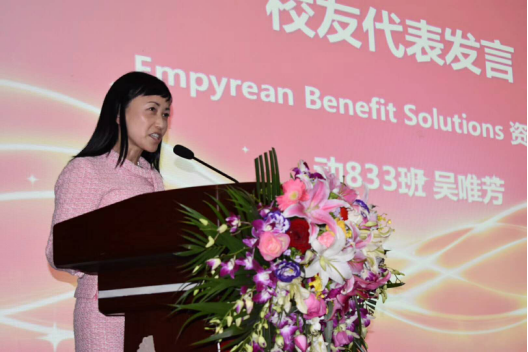 校友代表:动833班吴唯芳上台发言 校友代表:动932班孙达普上台发言