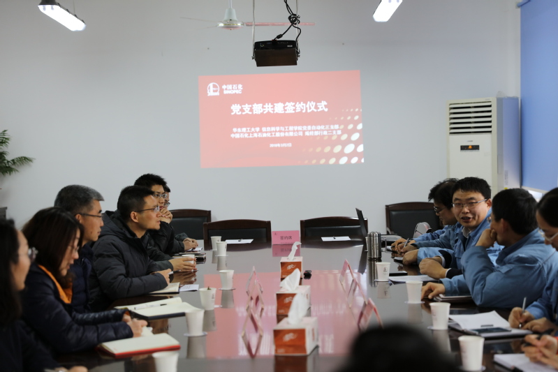 3月2日上午,信息学院自动化第三党支部与上海石化烯烃部行政第二党支部在中国石化上海石油化工股份有限公司烯烃部会议室签署了结对共建协议。日本成人视频 党委书记侍洪波,院长、党委副书记杜文莉,上海石油化工股份有限公司烯烃部党委书记朱佳华,上海石油化工股份有限公司烯烃部黄飞经理出席仪式。信息学院自动化第三党支部书记胡贵华、上海石化烯烃部行政第二党支部书记杨晓一代表双方签署协议。