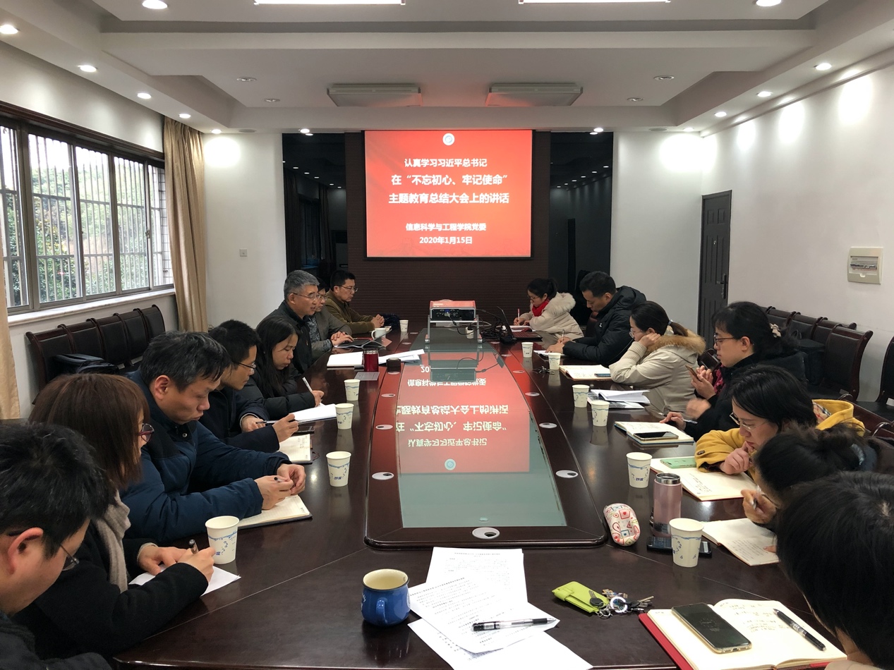 大会后,信息学院在实验十五楼207会议室召开党委中心组(扩大)会议,组织党委委员、教工党支部书记学习了习近平总书记在“不忘初心、牢记使命”主题教育总结大会上的重要讲话。习近平总书记的重要讲话系统总结了主题教育取得六大成果、六条经验,并提出了六点希望。会议再次强调,学院要把不忘初心、牢记使命作为加强党的建设的永恒话题和全体党员、干部的终身课题并形成长效机制,引导激励广大师生党员、干部奋力开创学院发展新局面。