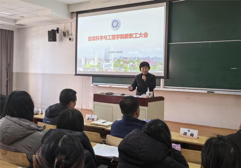 1月23日下午,信息学院教职工大会在八教107召开,校党委常委、副校长王慧锋出席会议并讲话,信息学院党政领导班子成员和全体教职工参加会议。会议由学院党委副书记、院长钟伟民主持。