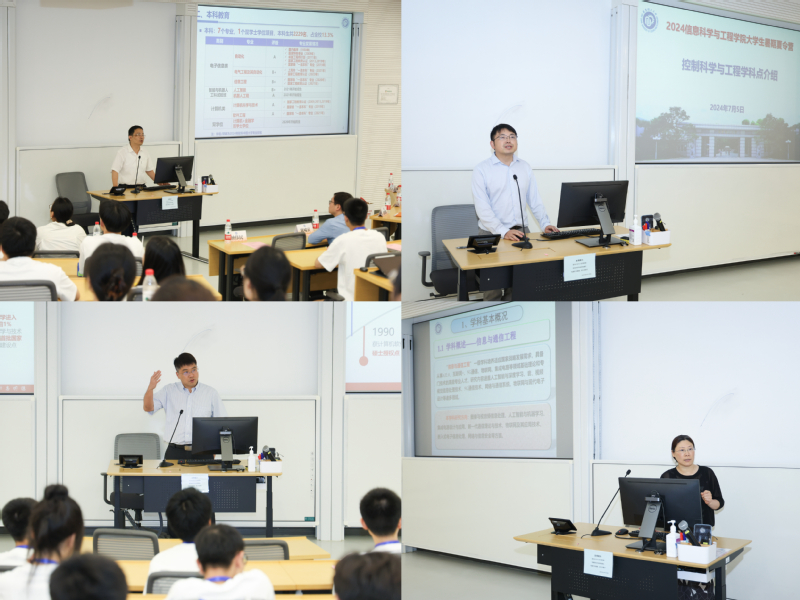 随后院长钟伟民向营员们介绍了学院的历史渊源、学科底蕴和发展历程。通过介绍学位点、优秀的师资队伍、专业的人才培养、国际合作和交流以及学生的毕业去向,帮助各位营员进一步了解了信息学院一流的科研条件、雄厚的科研实力和发展现状。姜庆超教授、王喆教授、朱煜教授分别代表控制科学与工程、计算机科学与技术以及信息与通信工程学位点介绍了各点的学科优势和人才培养情况。并鼓励营员们积极参与各项活动,珍惜这次难得的交流机会。