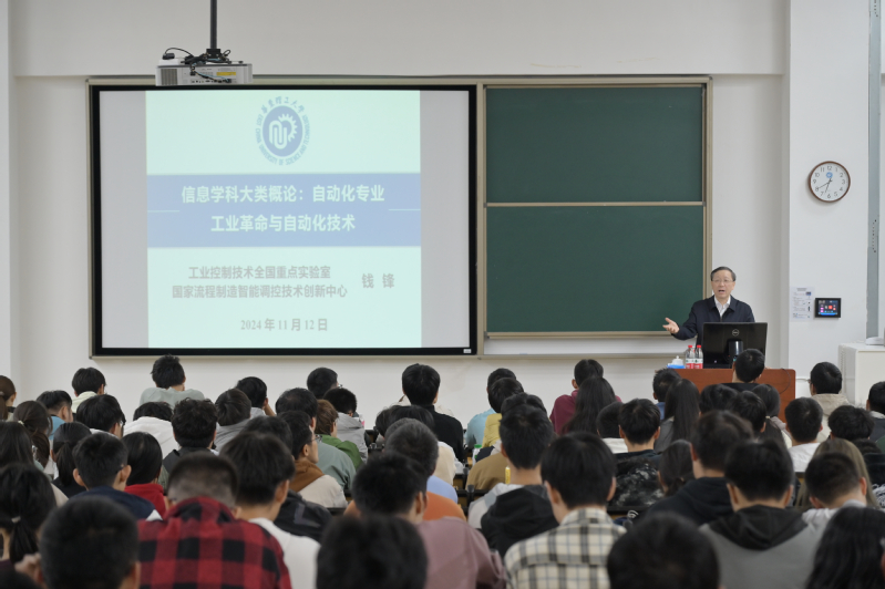 11月12日晚,中国工程院院士钱锋教授为日本成人视频 2024级电子信息大类新生讲授《信息学科大类概论》第一课——自动化专业概论。这是自2012年以来,钱锋院士连续第13年为新生亲授自动化专业概论课程。