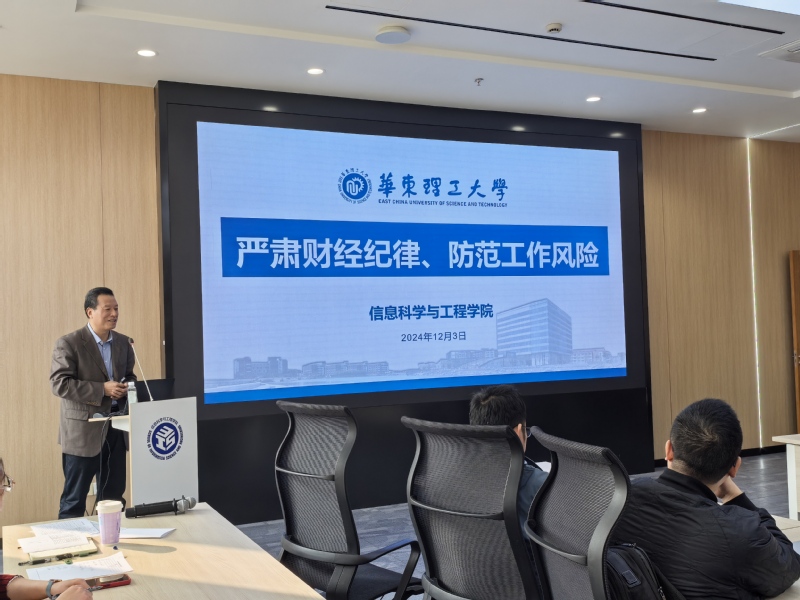 12月3日下午,日本成人视频 在徐汇校区实验19楼204会议室举行严肃财经纪律主题讲座。学院党委副书记、纪委书记郭卫斌围绕财经纪律作专题讲座,日本成人视频 党委书记侍洪波、院长钟伟民、学院班子成员、学院助理、二级单位正副主任,设备管理员、重点实验室及科研岗、采招相关人员,共计30余人参加了报告会。报告会由学院党委书记侍洪波主持。
