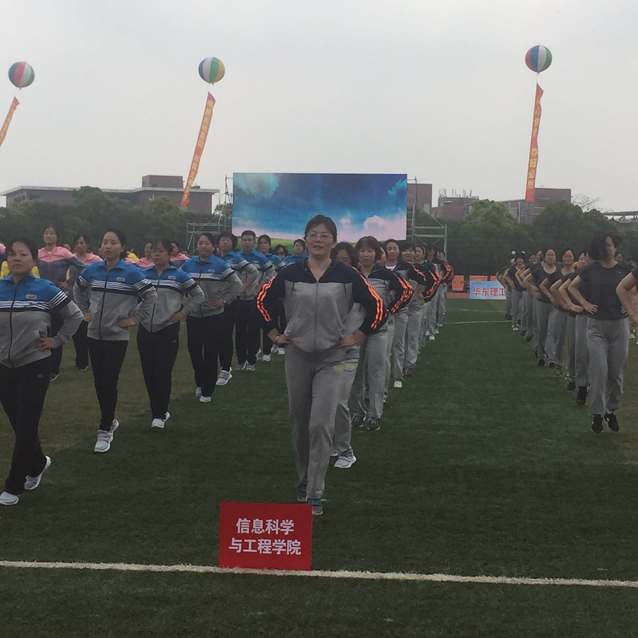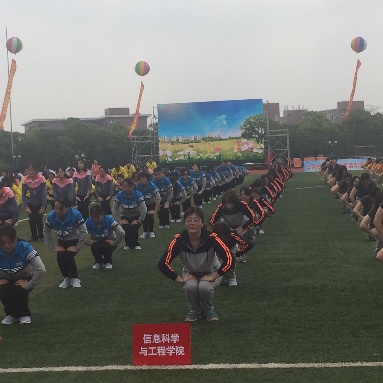 2016年华东理工大学第30届体育节教工运动会5月6日举行,信息学院教师踊跃报名,参加了踢毽子等13个项目比赛,比赛中顽强拼搏,取得了较好的成绩。广播操获得了第7名,篮球投篮、赶球接力和滚铁环获得了第8名。