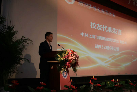 校友代表:动833班吴唯芳上台发言 校友代表:动932班孙达普上台发言
