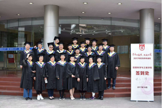 活动期间,信息学院党委副书记刘志鹏老师和教师代表与校友们开展座谈会,介绍学院发展情况和校友工作现状,并向心系母校的校友们表达了感谢,共叙华理情谊。与此同时,校友们积极填写了学院准备的调查问卷,给学院的学院建设和校友工作提出了宝贵的建议,同时也为学弟学妹们指明方向。学院为每位返校校友定制了纪念品,并举行了“重返少年时代”学士服拍照活动,让校友们重温在华理的美好岁月。