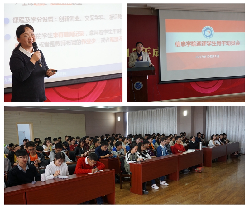 10月31日中午,信息学院在奉贤校区大学生活动中心419召开了学院本科教学迎评学生骨干动员及培训会议,会议由学院副书记刘志鹏主持,副院长万永菁作迎评动员及培训,信息学院本科各班学生骨干、本科生辅导员参加了会议。