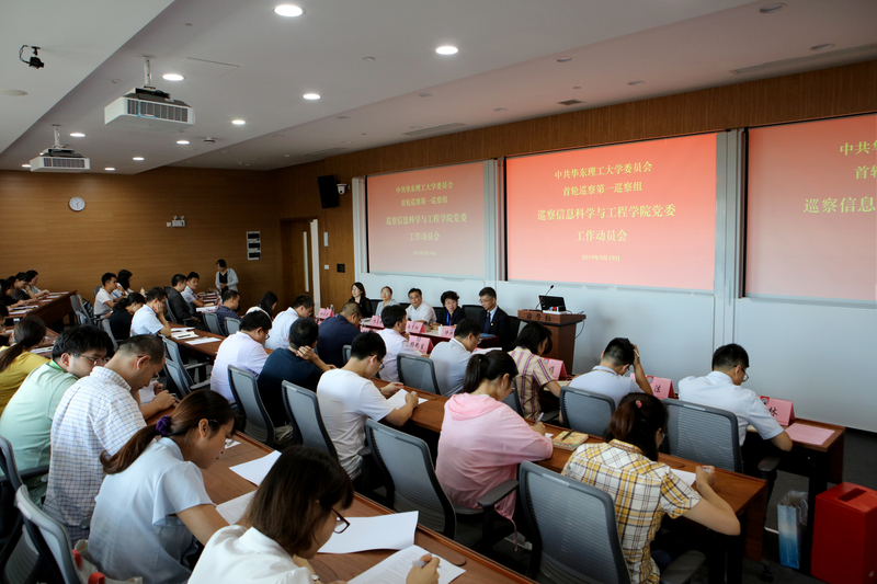 巡察办专职副主任朱育红、第一巡察组全体成员及巡察办其他成员,信息科学与工程学院党政领导班子全体成员、近期(一年内)退出领导岗位的班子成员、党委委员、党支部书记、系(所、中心等)负责人、党代会和教代会代表、学科带头人、学术委员会委员、工会委员、教师和学生代表、民主党派代表、离退休人员代表等参加进驻工作动员会。