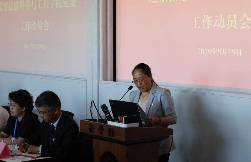 动员会上,第一巡察组组长王喆作动员讲话,介绍了巡察工作的主要内容、方式方法和工作安排。并表示巡察组将以坚持党的领导、加强党的建设、全面从严治党的要求,严格执行《中国共产党巡视工作条例》,校党委和巡察工作领导小组的要求和部署,分三个阶段开展工作,广泛听取各方面的意见,深入检查了解情况,着力发现问题,完成对信息学院党委的巡察任务。