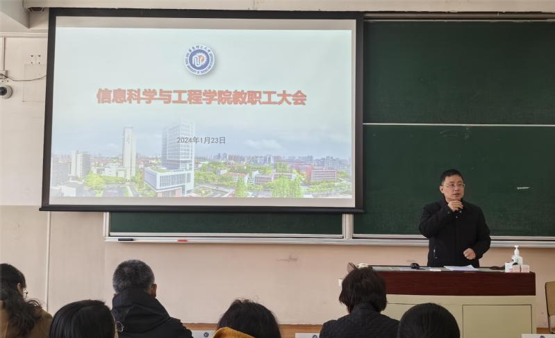 1月23日下午,信息学院教职工大会在八教107召开,校党委常委、副校长王慧锋出席会议并讲话,信息学院党政领导班子成员和全体教职工参加会议。会议由学院党委副书记、院长钟伟民主持。
