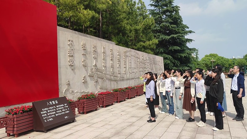 随后,团队一行来到南湖革命纪念馆的宣誓墙前,面向鲜红的党旗,在信息学院党委副书记许浩的带领下,庄严郑重地重温了入党誓词。铿锵有力的誓词,让大家再次深刻体会到作为一名新时代的党员所肩负的使命和责任。