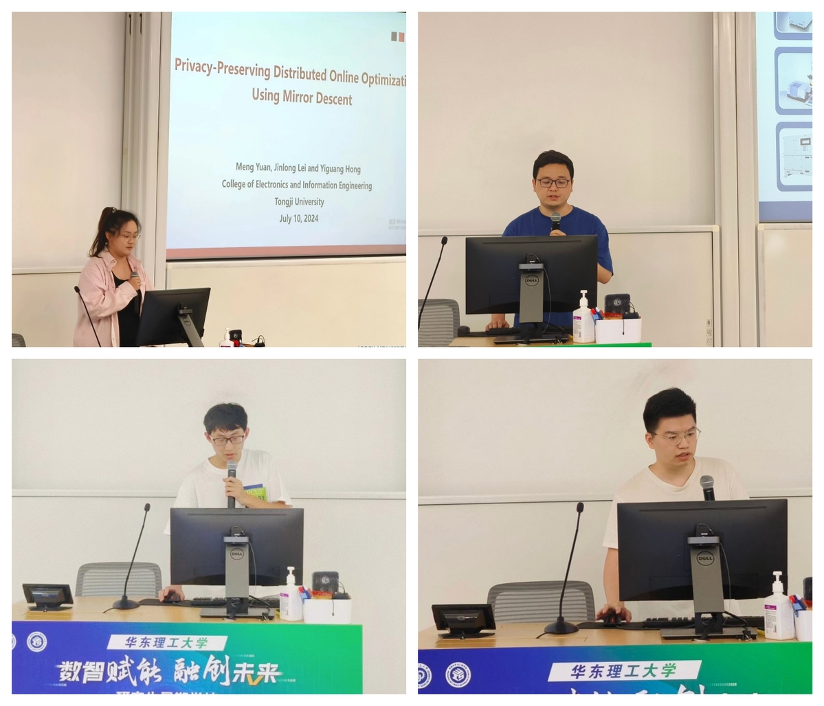 午餐过后,青年学术论坛一精彩上演。牛付喜(中南大学)的《网络化多智能体系统的分布式强化学习及其应用》、朱鸿诚(华东理工大学)的《基于移相变压器的针对电力信息物理系统的负荷重分配攻击影响消除策略》、沈鑫海(华东理工大学)的《Sliding Mode Interval Observer-Based Controller Design for Multi》、刘兵(华东理工大学)的《工业过程分布式优化与控制》依次展开。
