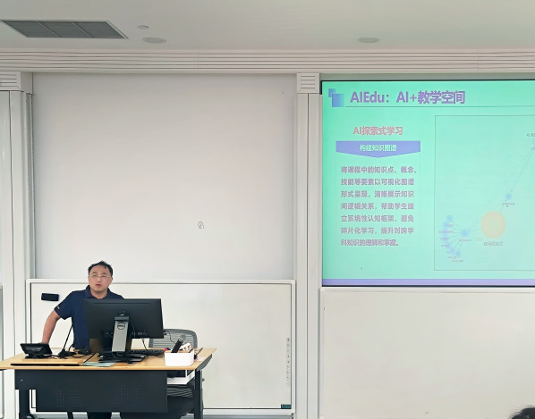 为积极应对教育智能化转型趋势,助力教师探索人工智能与教育教学的深度融合,华东理工大学信息科学与工程学院于5月27日正式启动“AI赋教,智创未来”专题报告系列讲座。本次活动聚焦AI技术赋能教学创新,通过前沿AI技术创新、多学科案例分享、智能教育工具实践等形式,帮助教师掌握人工智能在教学中的创新应用方法,提升智能教育设计与实施能力,进一步推动教学模式变革与高质量人才培养。首期专题报告会在实验十九楼A201会议室举行,教务处副处长程华、机械与动力工程学院副院长陈建钧应邀作专题报告。信息科学与工程学院副院长谭帅主持本次活动。