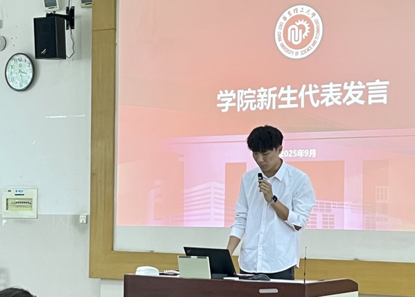 控制科学与工程专业学生孔祥海于八教201场馆作为新生代表发言,他回顾了从本科的好奇到备考的坚持,也坦言科研之路不乏挑战,但有信心迎难而上。他与同学们定下了三个约定,一是守好初心,严谨对待科研;二是攻克技术难关,主动突破舒适区;三是永葆协作热诚,发挥团队力量,表示将以“追光者”姿态,与时代同频、与学院共成长。