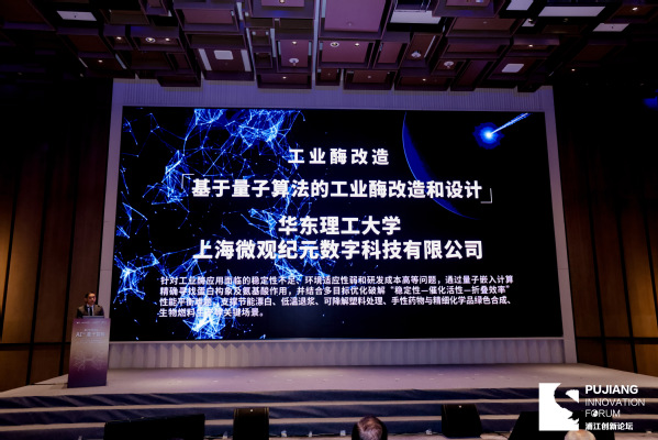 2025 年 9 月 21 日下午,由科技部、上海市人民政府主办,上海市科委、复旦大学承办的 2025 浦江创新论坛“量子科技论坛—AI量子:量子智能”专题论坛在沪举行。论坛现场,上海量子人工智能联合体、上海量子科技装备产业创新联盟正式揭牌成立,上海量子计算十大应用场景同步发布。其中,由华东理工大学与上海微观纪元数字科技有限公司(以下简称 “微观纪元”)联合打造的“基于量子算法的工业酶改造和设计”场景,入选上海量子计算十大应用场景。该场景直击工业酶应用的行业痛点,通过校企双方共同研发量子嵌入计算模型,精确寻找蛋白质构象与氨基酸作用,实现“稳定性-催化活性-折叠效率”性能平衡,高效解决工业酶在生物质转化利用可降解塑料处理、手性药物与精细化学品绿色合成、生物燃料生产等细分领域中的应用难题。我校信息学院计算机系教师李建华和应方立参会,李建华上台参与了十大场景的发布仪式。